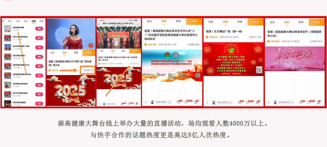 本次大会以 “传承崇高精神,凝聚奋进力量” 为核心,既是对崇高健康大舞台八载耕耘的成果回望,更是崇高健康守护一站式服务平台的全新启航。自 2017 年成立以来,崇高健康大舞台始终坚守公益初心,构建起覆盖全国 31 省的服务网络,汇聚 9360 万注册会员、300 多万文艺骨干,年办主题活动近千场,与快手合作的《百姓舞林盛典》话题播放量高达 8.1 亿次,让崇高精神在基层落地生根。
